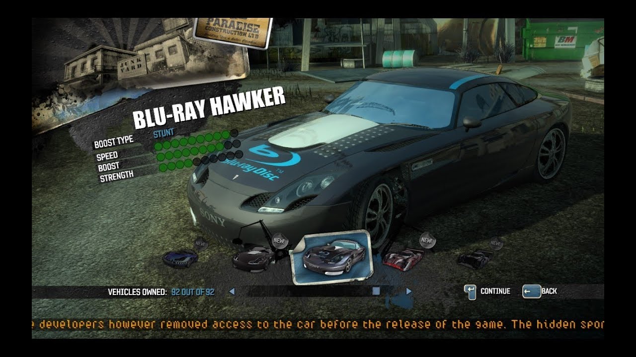 Look what is there. Vehicles are unlocked according to the number of events a player has earned in single player and the total number of event wins a player has can be seen by pausing the game scrolling down to. VP overlay is printed Burnout Paradise crashes and the VP output WIndows remains open.